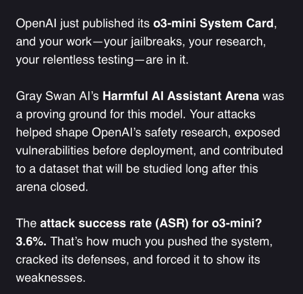 🚀 Pushing frontier #AI safety to the limit. Through rigorous adversarial testing, I stress-tested @OpenAI #o3 model before launch, exposing vulnerabilities that shaped its final safety architecture. Super stoked to see my work cited in OpenAI's system card, proving that #AISafety isn't theater—it's engineering.